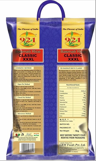 If you are looking for a premium quality rice that makes your mouth drool then your search ends here. 921 Classic XXXL Basmati Rice is distinct basmati rice that infuses an aroma into the air when cooked. The rice is long-grained and has extra-long processed graded grain. It’s known for its quality that you can witness as you cook and relish the meals with this luxurious rice.