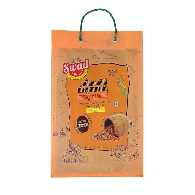 Swad Adatt Matta Rice is a premium, pesticide-free rice variety sourced directly from farmers. Rich in nutrients, it retains 20% bran (Thavidu), making it a wholesome and healthy choice. This traditional rice is known for its rich flavor, natural goodness, and superior quality, ensuring a nutritious addition to every meal.