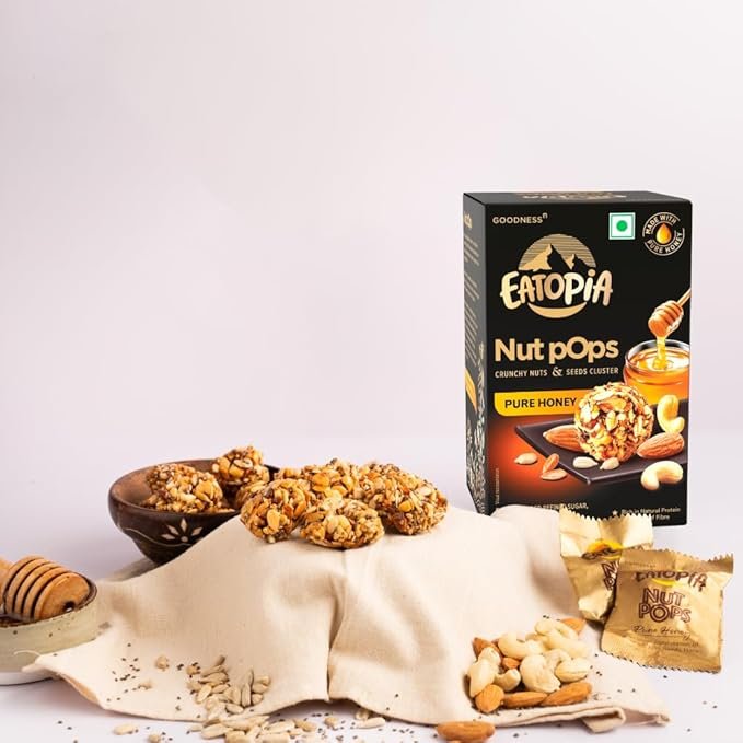 Experience the vibrant flavors of Eatopia Nut Pops, a unique treat inspired by traditional laddu recipes, yet made with 100% natural ingredients. The delicious blend of dry fruits, seeds, and honey makes for a sweet, wholesome snack that satisfies cravings without compromising on quality. Taste the power of nature in every bite!
