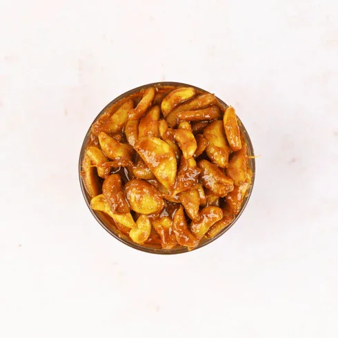 For all the garlic enthusiasts, this one's for you! Made from freshly grown organic garlic buds, carefully peeled and pickled with precision, this homemade garlic pickle promises to satisfy all your garlic cravings. Bursting with robust flavors and aromatic spices, it’s a must-have for adding a zing to your meals.