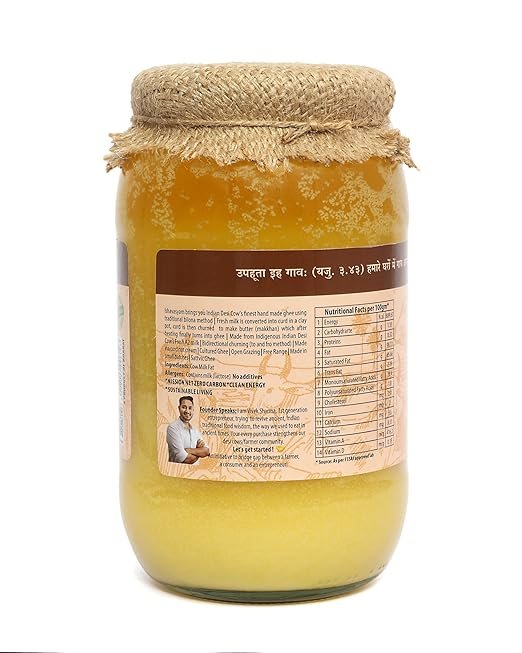 Desi Cow Ghee is coined as the ‘Golden Medicine’ of Ayurvedic Healing. Vedic A2 Ghee uses traditional, natural and animal-friendly vedic techniques, to create the purest ghee. As per the Shastras (Hindu Rulings), the ghee made from the vedic ghee-making technique is called ‘Bilona Ghee’. Hand-churning ghee in this manner is said to retain healthy, fat soluble vitamins, which facilitate the absorption of essential nutrients in our body. Hand-churned ghee also contains conjugated linolenic acid which is helpful in losing weight, particularly belly fat, and is known to slow the progress of cancer and heart disease. Additionally, hand-churned desi cow ghee provides deep nourishment to all of the dhatus (tissues) of the body, also helping with ulcers, constipation and the treatment of burns and blisters.