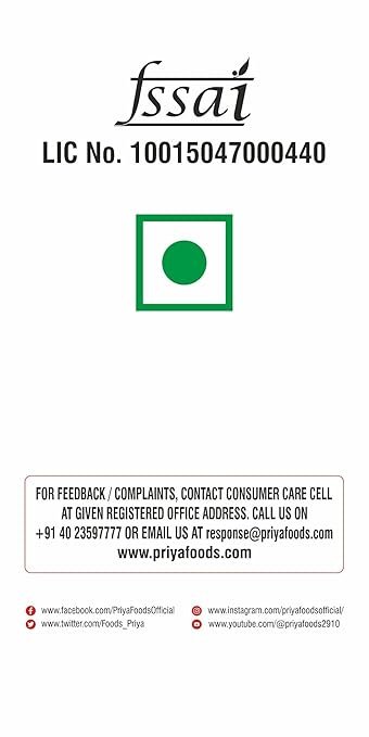 - PACKAGING & CERTIFICATION - Easy to carry, leakproof jars. No breakage, no fuss. Priya Foods has ISO:22000 -2018 Certification from Intertek; HACCP Certification from Intertek;
