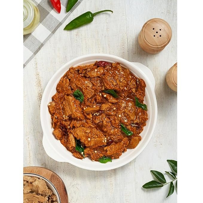 | Ingredients | Greenmeat Chilly Roast is a fiery, tangy dish with a hint of smoky sweetness. Tender Greenmeat pieces are simmered with onions, ginger, garlic, and dried Kashmiri chilly blended with a bold masala mix for a distinct flavor. |
